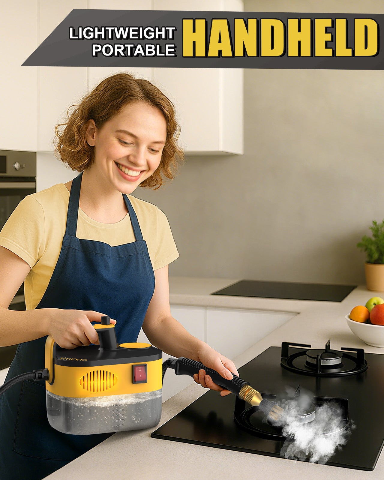 - 【Effective Multi-Surface Cleaning】Our steam cleaner works with 2500W power、3BAR pressure and produces high temperature steam of 221°F (105°C)-226°F (130°C) to ensures deep cleaning. And this handheld multi-surface natural steam cleaner come with 2*copper brush, 2*nylon brush and 1*large nylon brush that is is ideal for from delicate surfaces like upholstery and windows to tougher areas like grout, sinks, stoves and tile, also great for car.